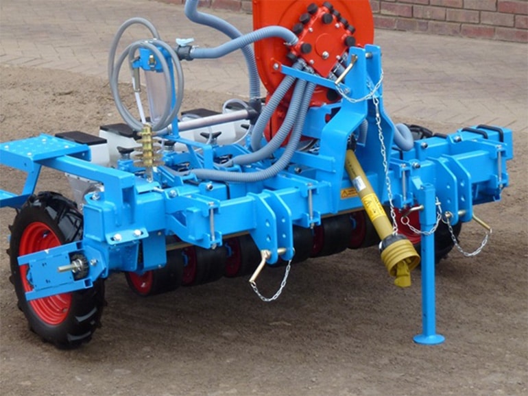 The “Version A” is a single row unit that is the most commonly used for spinach, turnips and other vegetables that would better grow in a single line. It is possible to convert a single row Version A into a double row Version C and the other way around within a few minutes but it requires additional components and parts to do the conversion. The Version A planter unit also requires a minimum row distance of 20cm.